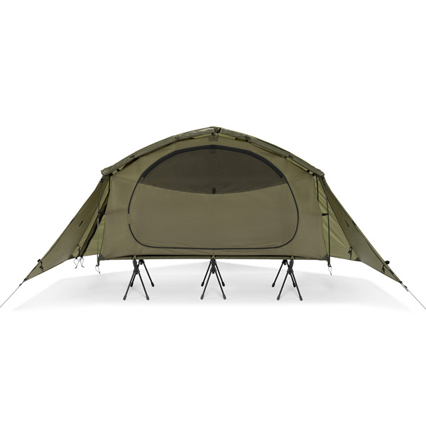 タクティカル コットテントソロ インナーテント(メッシュ / ファブリック)を単独で使用する際に併用するタクティカル コットテントソロ フライ。 ※フライ単独での使用はできません。 ※タープポールは付属しておりません。 ※こちらの商品はルーフ部分のみとなります。インナーテント、コットは付属いたしません。 ※ご使用前に取扱説明書をよく読んで、正しい取り扱い方法をご確認ください。 ※製品のサイズ・重量は測定方法、環境などの理由で実際のサイズ・重量とは多少異なる場合がございます。